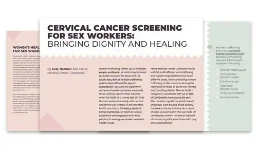 Join Dr. Judy Norman as she shares her suggestions for best practice in serving sex workers women’s health needs based on her extensive work with the population in her women’s health practice at the Mercy Medical Center in Cambodia.