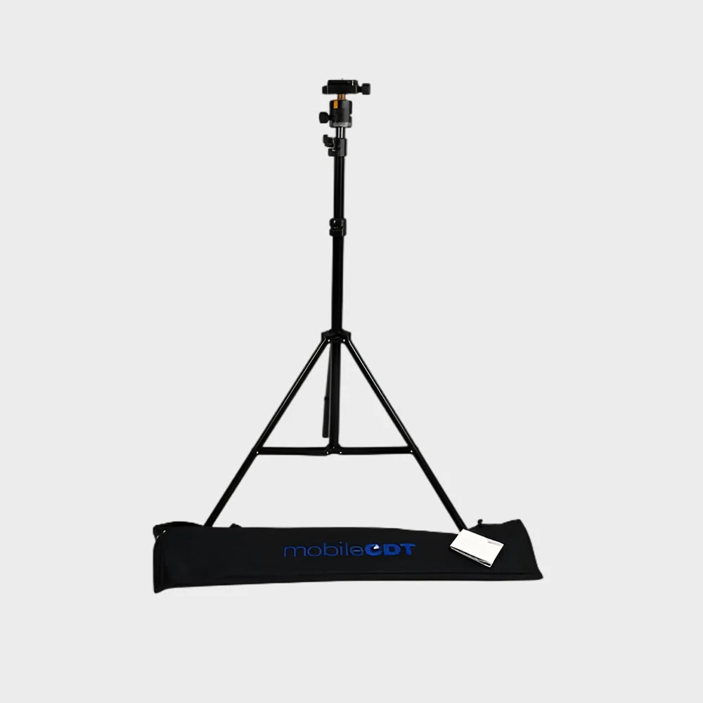 A collapsible, lightweight stand system designed for mobile health programs and temporary clinical setups, providing stable device positioning without compromising portability.
